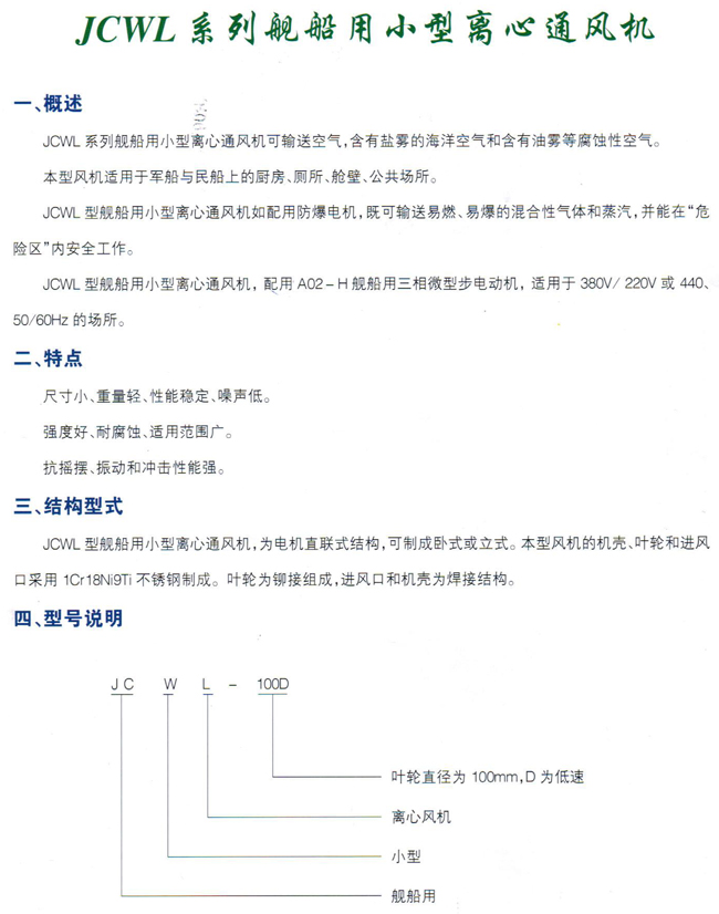 首页 > 产品信息 > 船用风机 > 舰船用小型离心通风机 > JCWL舰船用小型离心通风机